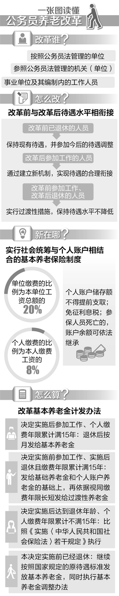 中央财经大学社会保障研究中心主任褚福灵认为,此次的改革不仅使企业和事业单位的养老金保险制度统一,从某种意义上来说还保障了养老金待遇的持续性。