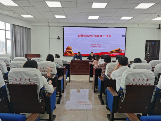 2024年4月19日下午,鸿途社区白菜官网党委在红湘校区南华楼1408室开展部署党纪学习教育工作会。